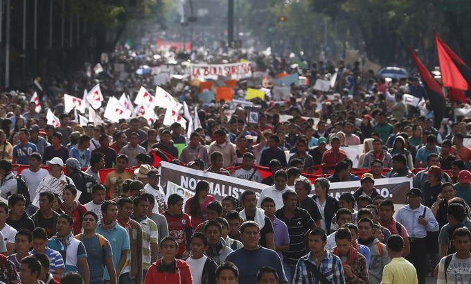 Thousands march for missing Mexico students