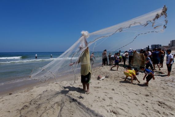 Fishermen went to the sea hoping to find some fish after being barred from fishing since the beginning of the Israeli military offensive on July 8.