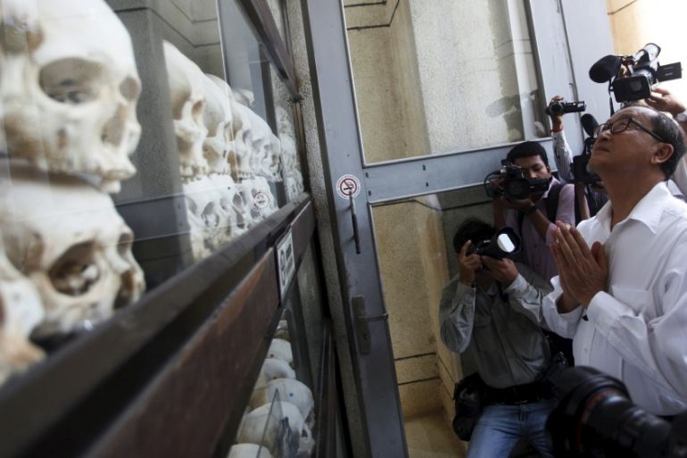 A few hundred people, including monks and elderly regime survivors, gathered early on Friday at Choeung Ek – the most notorious of the regime’s Killing Fields – on the capital’s outskirts, burning incense and chanting Buddhist prayers at a memorial stupa housing the skulls and bones of victims.
