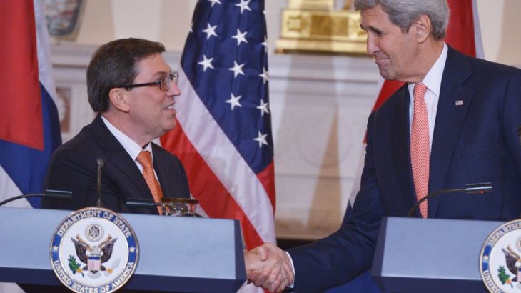 Speaking in Spanish alongside Rodriguez just hours after diplomatic ties were restored, Kerry said the US “welcomes this new beginning in its relationship with the people and government of Cuba”.