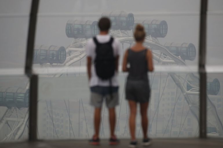 Haze levels have also been steadily rising in neighbouring Malaysia due to the Indonesian fires, with buildings more than a kilometre away in the capital Kuala Lumpur appearing as vague silhouettes.