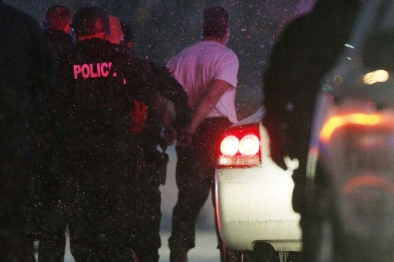 Dear – later seen in a white T-shirt, handcuffed, and led away by officers – first engaged in a protracted gun battle with police, but ultimately surrendered about five hours after the start of the violence.