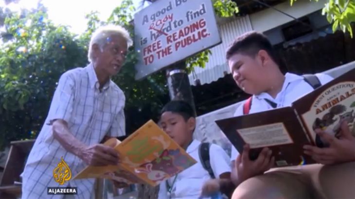 Hernando Guanlao set up a reading corner outside his home 15 years ago to help out-of-school youth learn how to read.