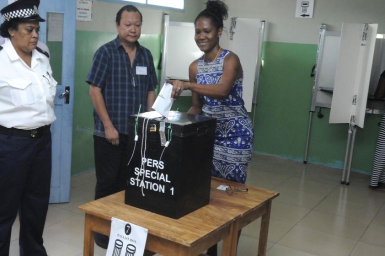 The Seychelles will go to an unprecedented presidential election run-off after all six candidates in the first round failed to secure a 50 percent share of the vote, the electoral commission said on Sunday.