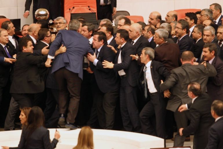 Injured when a gavel struck him in the chest during a brawl last week, Erdogdu warned that the bill allows police to initiate strip searches or vehicle searches without a court warrant. That provision was approved earlier this week, along with an article extending non-court-approved detention periods from 24 to 48 hours, he said.