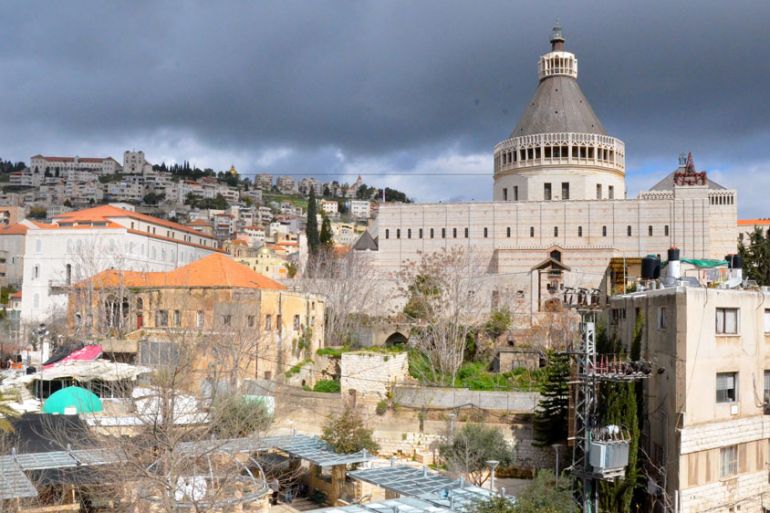 In Mary’s Well Square – where the Angel Gabriel is said to have appeared to the Virgin Mary – four Arab Israeli men are chatting about the election, sitting around a small table on white plastic chairs.