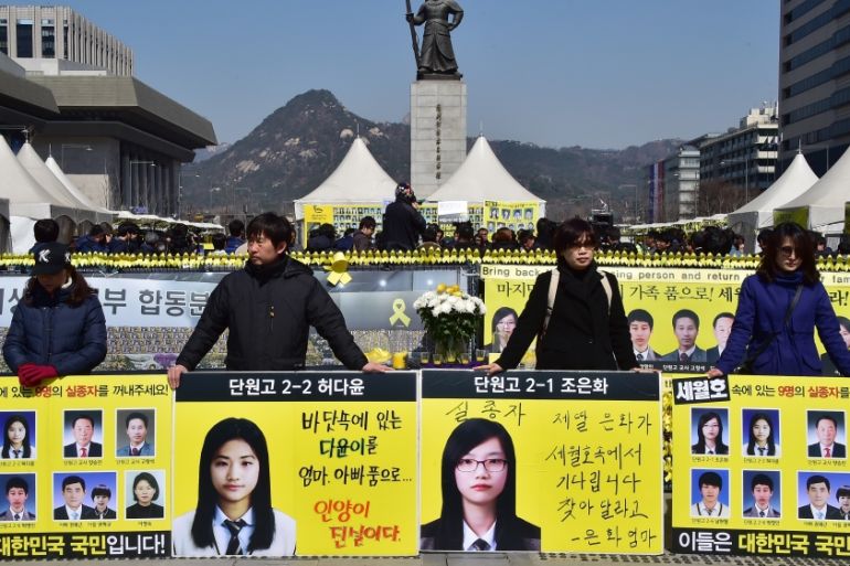 “I am afraid to meet people, they say things, they mean well, but nothing helps,” said Park Eun-mi, who wears a necklace with her daughter Da-yun’s photograph on it – the two bear a striking resemblance – and a bracelet reading “Remember0416,” a reference to the day of the disaster.