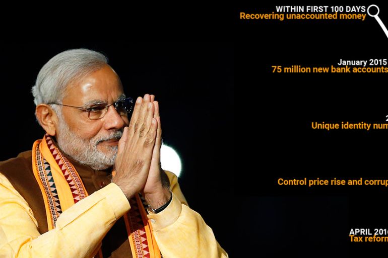 A look at the main promises made by the BJP government, the approximate target dates and what it has delivered.