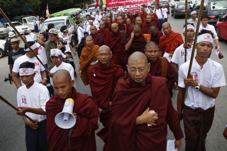 Yangon, Myanmar – Hundreds of demonstrators, including Buddhist monks, have marched in Yangon against what they say is “bullying” by the international community about Myanmar’s stance on the Rohingya ethnic minority group.