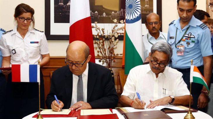 French Defence Minister Jean-Yves Le Drian signed the agreement with his Indian counterpart, Manohar Parrikar, in New Delhi, on Friday, ending almost 18 months of wrangling over terms between New Delhi and manufacturer Dassault Aviation.