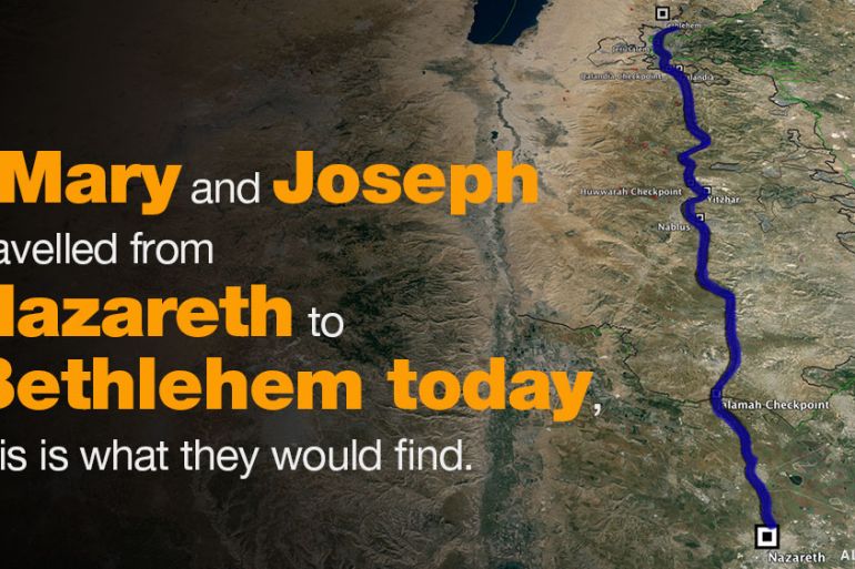 Mary and Joseph would have to pass through Israeli checkpoints, occupied land, illegal settlements and separation wall.