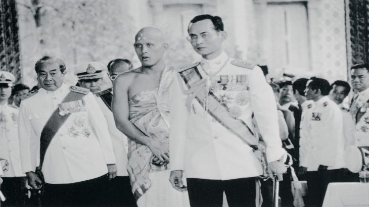 ![King Bhumibol leads his only son, Crown Prince Vajiralongkorn, for his ordination into the Buddhist monkhood [Getty Images]](https://www.aljazeera.com/wp-content/uploads/2016/10/e70c63eca3a6421fa619769fa19935dc_18.jpeg?quality=80)
