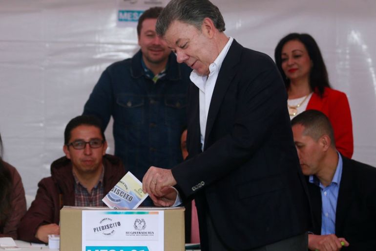 ![A 'yes' supporter cries after hearing the referendum results [John Vizcaino/Reuters]](https://www.aljazeera.com/wp-content/uploads/2016/10/b606f24b5a8845fc9c14fda1978ca530_18.jpeg?quality=80)