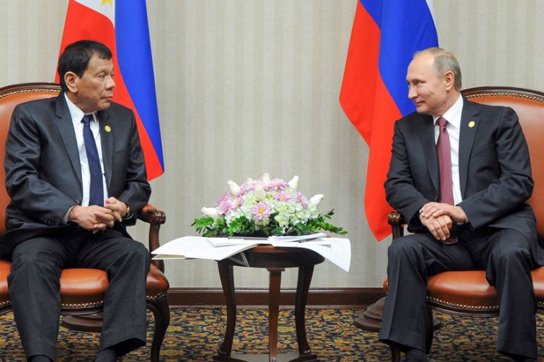 In talks with Putin during an Asia-Pacific summit in Lima, Peru, Duterte held nothing back in his views about major powers such as the United States, suggesting that he is sticking to his guns on re-aligning foreign policy away from Washington, despite his warm words for incoming US president, Donald Trump.