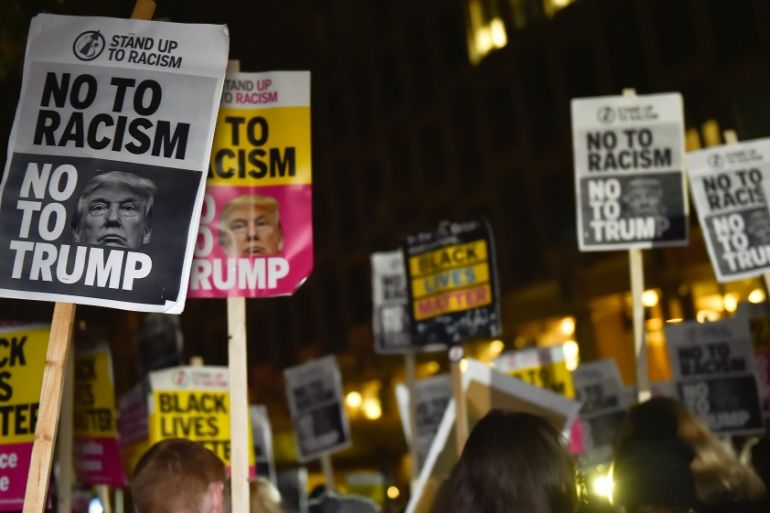 Protests against Trump and racism have taken place across the world after his election victory [Reuters]