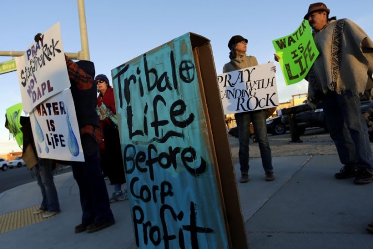 Activists have spent months protesting plans to route the $3.8bn Dakota Access Pipeline beneath a lake near the Standing Rock Sioux reservation, saying it poses a threat to water resources and sacred Native-American sites.