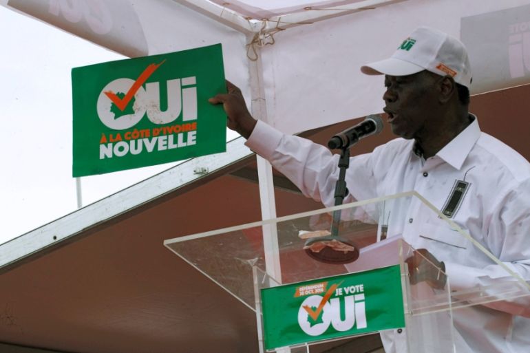 It would also get rid of a contested clause on national identity that took effect in 2000. It stipulates that both parents of a presidential candidate must be born on Ivorian soil and not have sought nationality in another country.