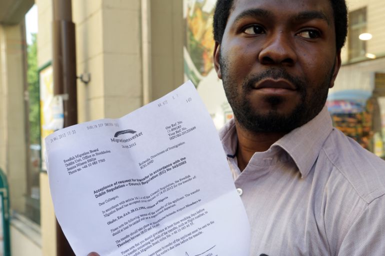 Eze was taken to Stockholm. At the airport, he thought the Icelandic authorities would give him back the only ID he had – his Nigerian driver’s licence. They took it back to Iceland. He was handed papers by the Swedish immigration authorities, which gave him until June 1 to leave Sweden or be deported back to Nigeria.