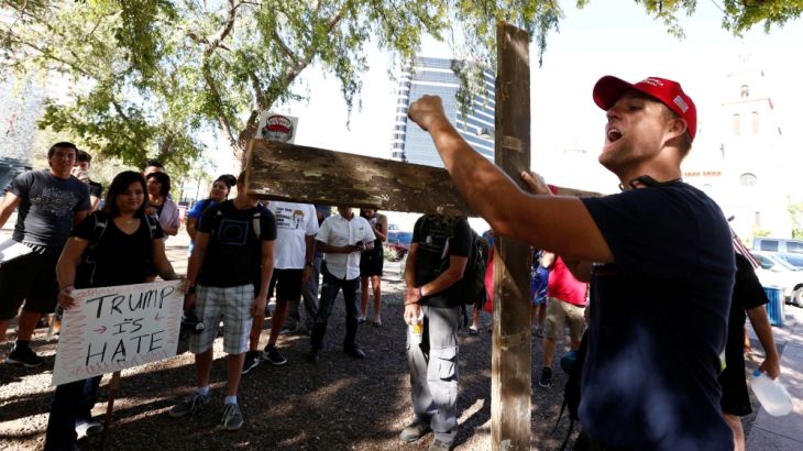 Trump also reaffirmed his pledge to build a wall on the country’s southern border with Mexico, as supporters chanted, “Build a wall”.