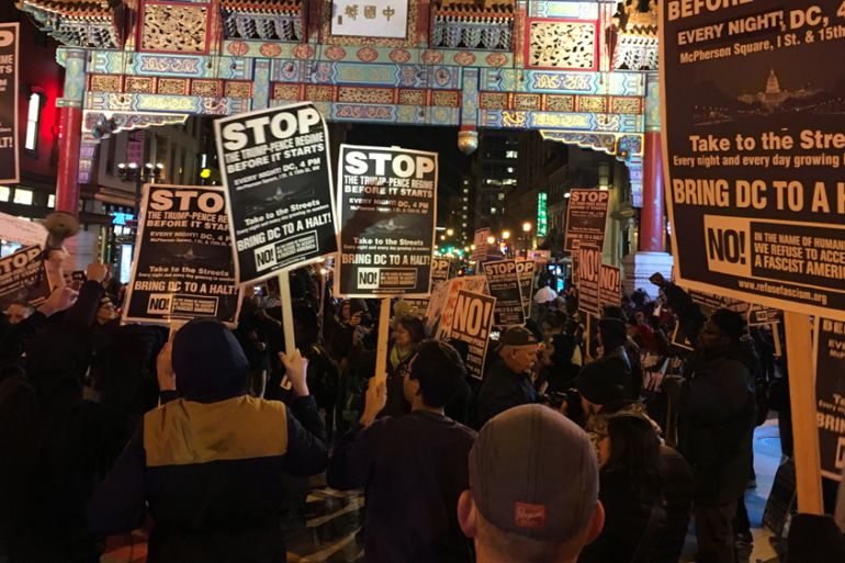 ![Protests were also held at the Trump International Hotel in New York City [Reuters]](https://www.aljazeera.com/wp-content/uploads/2017/01/4323e7c59fbd441ab90144c223b6a70a_18.jpeg?quality=80)