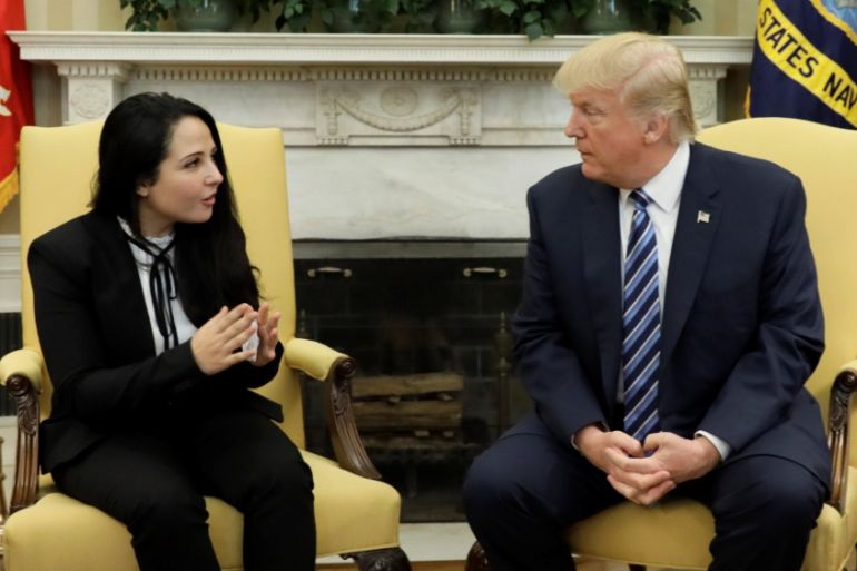 Hijazi was accompanied by her brother, Basel, as she met Trump in the Oval Office.