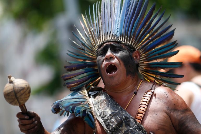 ![Indigenous women protest President Michel Temer's plan to restrict land titles in Brasilia last month [Eraldo Peres/AP]](https://www.aljazeera.com/wp-content/uploads/2017/09/3a227bc3ac5745eaacaeab5b3c613f73_18.jpeg?quality=80)