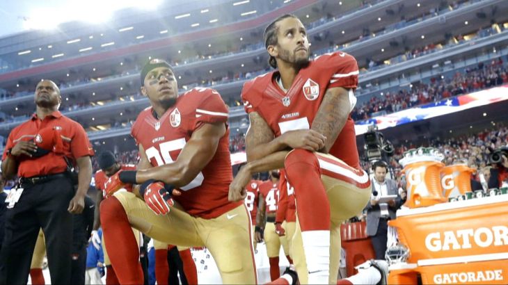 Quarterback Colin Kaepernick, who started the trend last year when he played for the San Francisco 49ers, has not been signed by an NFL team for this season.