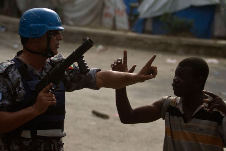 ![A UN peacekeeper from Paraguay patrols the streets of Port-au-Prince, 2011. [File: Ramon Espinosa/AP Photo]](https://www.aljazeera.com/wp-content/uploads/2017/10/ebdf9954b1d241e2a3fa88f9255f2920_18.jpeg?quality=80)