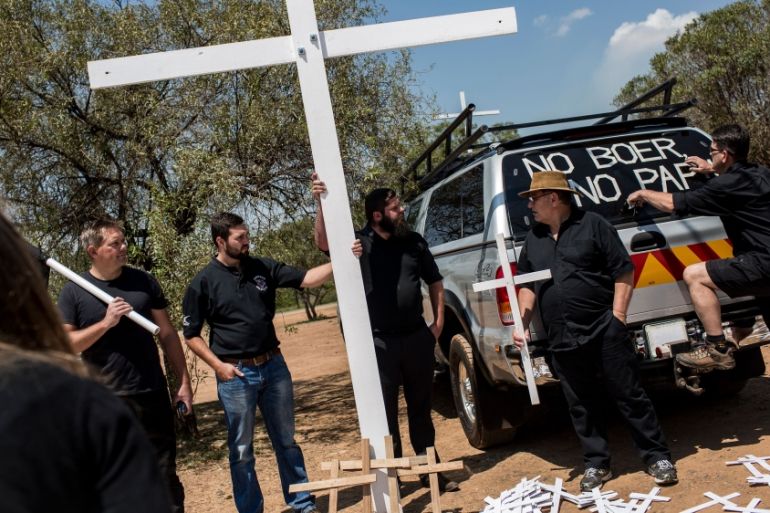 Protesters carried white crosses and held placards that read: “No Boer No pap” or “Don’t kill the hand that feeds you”.