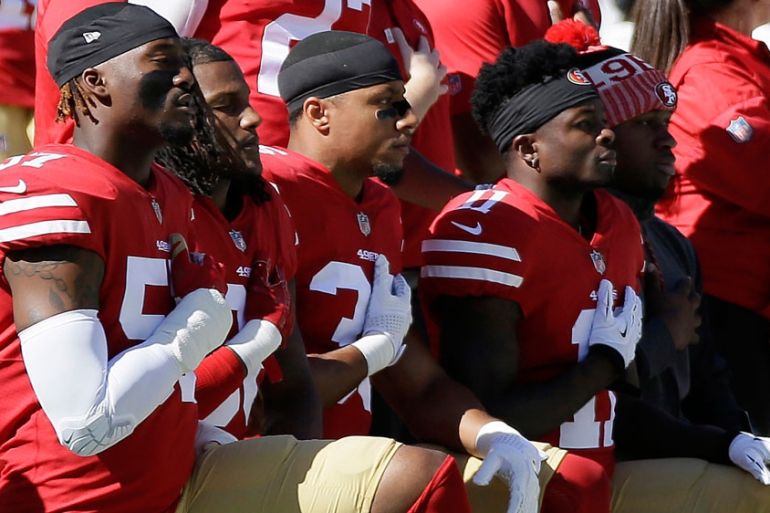 Professional American football players continued their protests against police brutality on Sunday despite ongoing blowback from right-wing US President Donald Trump and other politicians.