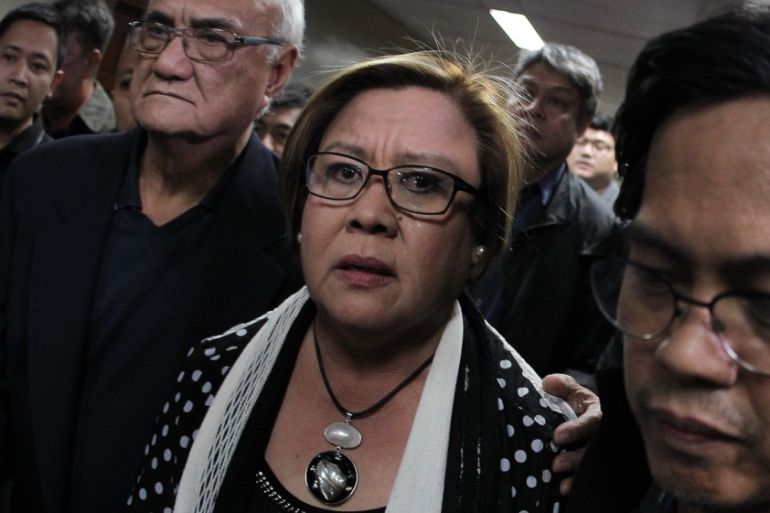 ![De Lima has branded President Duterte a 'sociopathic serial killer' because of his drug war policy that has left more than 7,000 people dead [File: EPA]](https://www.aljazeera.com/wp-content/uploads/2017/02/8512b70fa2de4dd49b9adda3b55338f7_18.jpeg?quality=80)