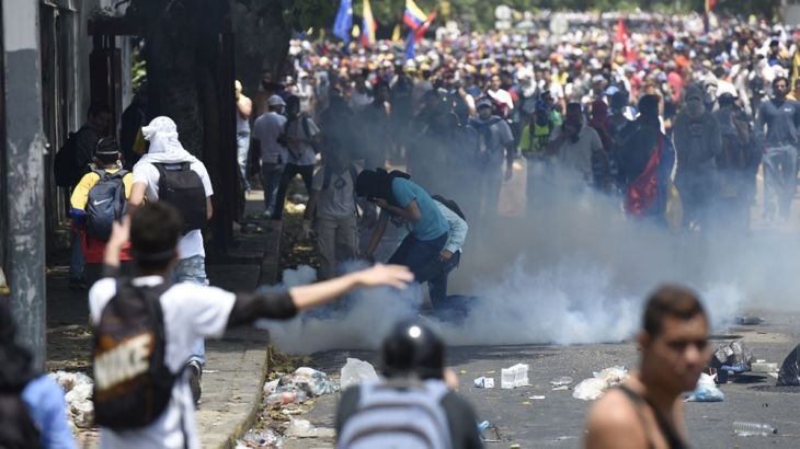 Police used tear gas against demonstrators as anti-government protests continue in Caracas.