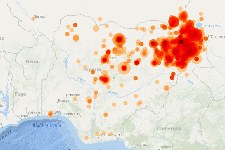 Explore our interactive map to examine in detail the violent incidents in and around Nigeria from 2009 to 2016.