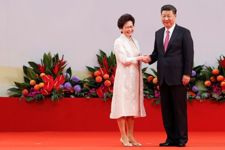 She added, however, that “the Hong Kong people are very happy to see the back of Leung Chun-ying, who was the chief executive for the last five years and who really wreaked havoc in Hong Kong”.
