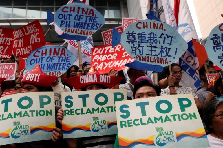 Protesters have rallied outside the Chinese consulate in the Philippines capital, Manila, against China’s militarisation of the disputed islands in the South China Sea.