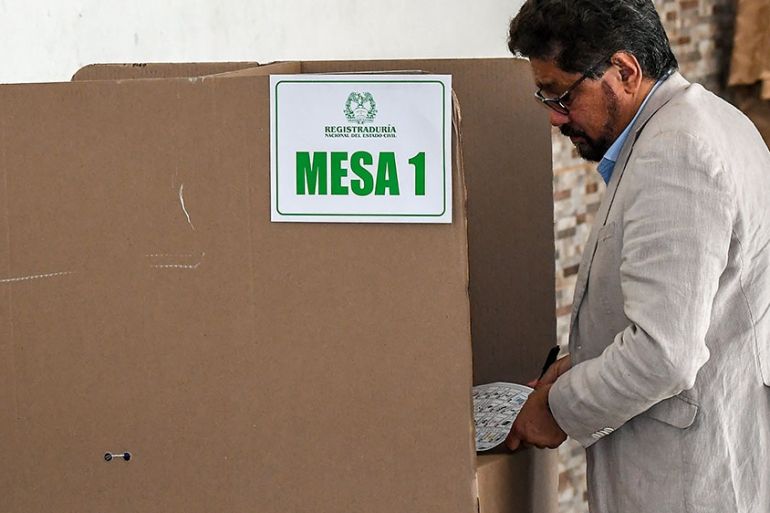 A formally-dressed man voting in a nearly empty public hall, Ivan Marquez would not have grabbed much attention were it not for the fact he was not any ordinary voter, but formerly a high-ranking commander of the FARC rebel group who was also running for the Senate.
