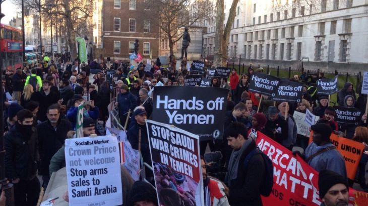 ![Demonstrators called attention to Saudi Arabia's human rights record outside the PM's office [Claire Gilbody-Dickerson/Global News Insight]](https://www.aljazeera.com/wp-content/uploads/2018/03/7d71ae3507974f99b17c3d6002fec554_18.jpeg?quality=80)