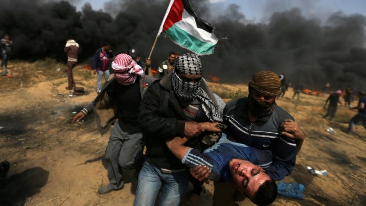 ![Palestinian protesters run from tear gas launched by Israeli forces [Mustafa Hassona/Anadolu Agency]](https://www.aljazeera.com/wp-content/uploads/2018/04/9dabb962cf174148bee2044eba34e80d_18.jpeg?quality=80)