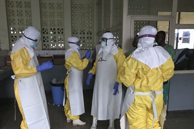 ![Sunday, May 20, 2018 - a team from Medecins Sans Frontieres dons protective clothing and equipment as they prepare to treat Ebola patients [Louise Annaud/Medecins Sans Frontieres via AP]](https://www.aljazeera.com/wp-content/uploads/2018/05/c527992b14624e948fefb65420ede733_18.jpeg?resize=770%2C513&quality=80)