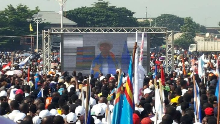 Thousands of opponents of Democratic Republic of Congo (DRC) President Joseph Kabila have gathered in the capital, Kinshasa, to hear a video message from an exiled opposition leader demanding a united front for presidential elections scheduled for December.