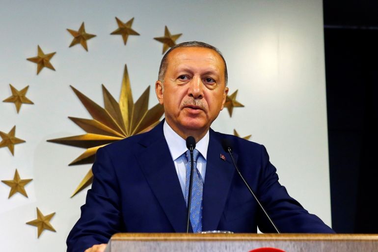 Turkish President Tayyip Erdogan speaks during a news conference in Istanbul, Turkey June 24, 2018. Kayhan Ozer/Presidential Palace/Handout via REUTERS ATTENTION EDITORS - THIS PICTURE WAS PROVIDED BY A THIRD PARTY. NO RESALES. NO ARCHIVE. [Reuters]