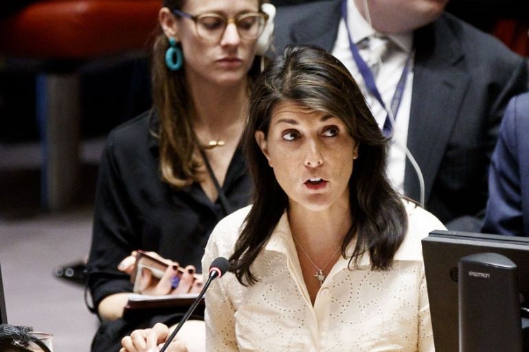 US ambassador to the UN Nikki Haley called the global body a 'cesspool of political bias' [Toya Sarno Jordan/Reuters]