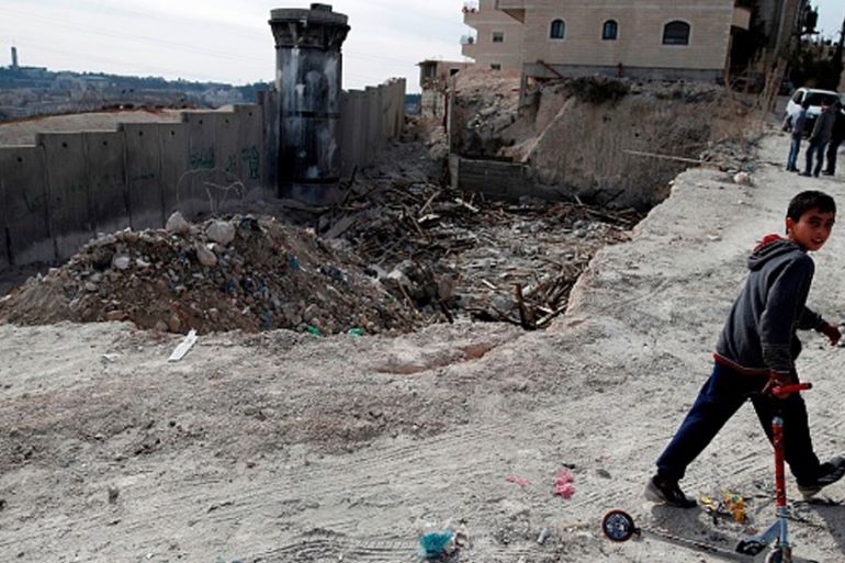 A Palestinian boy walks past the rubble of a demolished house in East Jerusalem [Ahmad Gharabli/AFP/Getty Images]