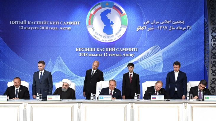 Five states sharing Caspian shoreline sign deal on legal status of inland body of water, agreeing to keep it exclusive.