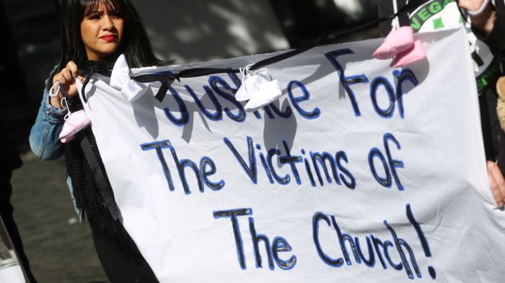 ![Protesters demonstrate on the Ha'Penny Bridge in Dublin during Pope Francis' visit [Hannah McKay/Reuters]](https://www.aljazeera.com/wp-content/uploads/2018/08/205c878245824bd8ac83bb6ee98811dc_18.jpeg?quality=80)