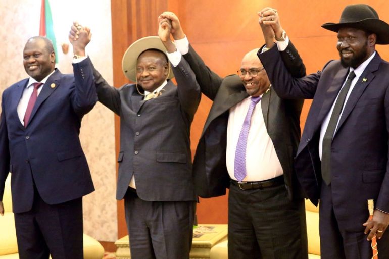 President Salva Kiir and his rival Riek Machar were in neighbouring Sudan on Sunday to sign the deal, under which the rebel leader is set to return to a unity government as the first of five vice presidents.