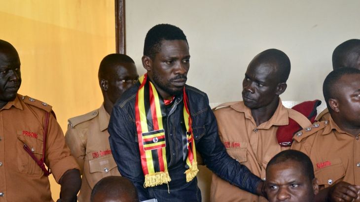 ![Protesters have been demonstrating against the arrest and detention of Bobi Wine [Reuters]](https://www.aljazeera.com/wp-content/uploads/2018/08/bee3833aa58642b7b3fefcaa246d5775_18.jpeg?quality=80)