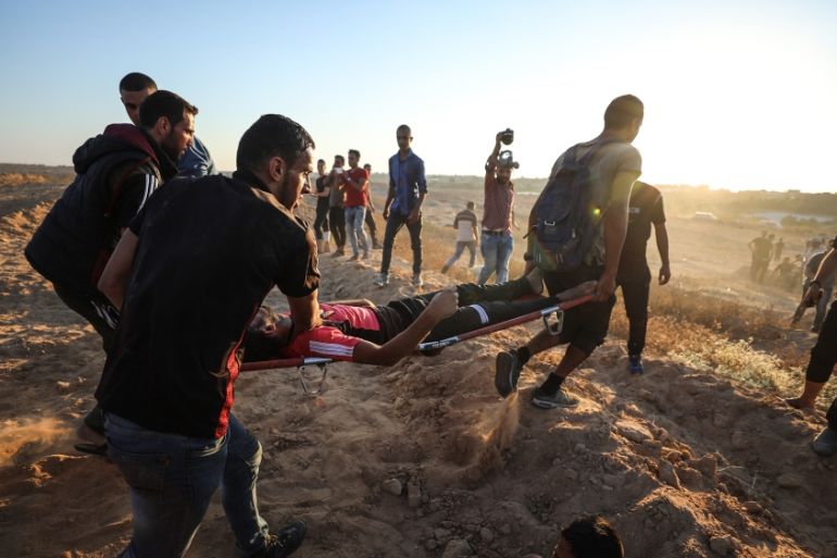 An Israeli military spokeswoman said soldiers had come under attack on the fence, with stones and firebombs thrown at them. Live rounds were fired according to “open-fire regulations”, she said.