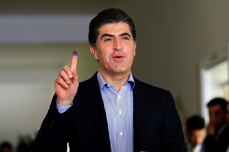 Prime Minister Nechirvan Barzani of the KDP cast his vote shortly after polls opened on Sunday morning [Thaier Al-Sudani/Reuters]