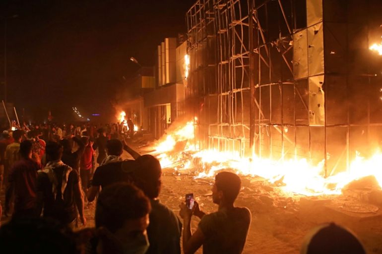 ![The headquarters of Asaib Ahl al-Haq (pictured) was among the buildings set on fire by protesters [Essam al-Sudani/Reuters]](https://www.aljazeera.com/wp-content/uploads/2018/09/957e4bcf58464a638745ef643663404c_18.jpeg?quality=80)